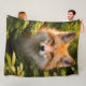 Golden forest guardian majestic red fox fleece thr blanket