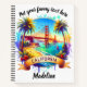 Vibrant sunset hues blend with palm trees and waves as sailboats glide past the iconic Golden Gate Bridge, capturing the essence of California's stunning coastal beauty and relaxed vibe.