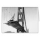 Striking photograph of the building of the Golden Gate Bridge in San Francisco, circa 1936. Shows the roadway being attached to the suspension cables.