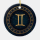 Golden Gemini Zodiac Circle With Starry Night Ceramic Ornament