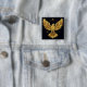 A stunning image of a golden, intricately designed geometric eagle with outspread wings, positioned against an abstract dark background with mystical patterns. Ideal for themes of strength, power, and freedom.