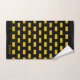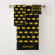 Elegant golden geometric shapes on black Bath Towel Set. Name text can be personalized.