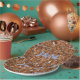 Golden chips of glass with little reflections of sky blue is the inspiration of these unique bronze paper plates. Its various shades of brown, bronze and gold are earthy, but this glamourous party plate design appears to sparkle elegantly. Personalize with an Initial(s). Coordinating plates, cups and more are available, see the collections.
