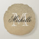 Golden Glitter Monogram Round Pillow