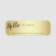 Add a warm glow to friends at a reunion or coworkers at a convention by using golden name tags with Hello / Hallo / Hola in handwriting style lettering. "My name is" text can also be edited for any language to create a simple and elegant name tag for any event.