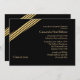 A simple, yet sophisticated invitation featuring a twist of gold and black stripes, angled at the corner against a black background.