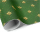 This Irish inspired pattern features metallic gold four leaf clovers on a dark green background.