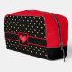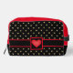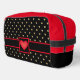 This design has a gold coloured heart pattern, on the front and back panels. In the centre there’s a black band with, a red heart in the centre. The top, sides and bottom are a coordinating solid red and black.