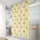 Bring a unique new look to your bathroom decor with this shower curtain, featuring a pattern of honeybees on a yellow honeycomb background, with cells outlined in gold faux foil.