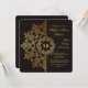 A luxurious invitation for celebrating your most formal affair. The dark background has a brown abstract pattern and is overlaid with a repeat of the pattern in gold. The featured wreath can hold monograms or a year. The perfect choice to impress. Want to save money? Print with the basic square corners.
