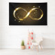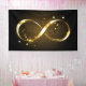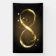 Gold, jewellery infinity symbol with gold stars on a black background. Design with gold star.