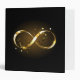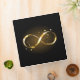 Gold, jewellery infinity symbol with gold stars on a black background. Design with gold star.