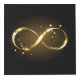 Gold, jewellery infinity symbol with gold stars on a black background. Design with gold star.