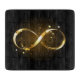 Gold, jewellery infinity symbol with gold stars on a black background. Design with gold star.