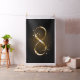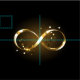Gold, jewellery infinity symbol with gold stars on a black background. Design with gold star.