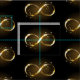 Gold, jewellery infinity symbol with gold stars on a black background. Design with gold star.