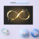 Gold, jewellery infinity symbol with gold stars on a black background. Design with gold star.