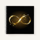 Gold, jewellery infinity symbol with gold stars on a black background. Design with gold star.