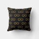 Elegant Throw pillow with golden infinity symbol pattern on black background.