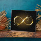 Gold, jewellery infinity symbol with gold stars on a black background. Design with gold star.