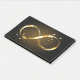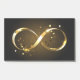 Gold, jewellery infinity symbol with gold stars on a black background. Design with gold star.