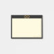 Post-it notes with elegant golden infinity symbol on black frame and light yellow background. Text "Have a Good Day" can be personalized.