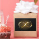 Gold, jewellery infinity symbol with gold stars on a black background. Design with gold star.