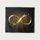 Gold, jewellery infinity symbol with gold stars on a black background. Design with gold star.