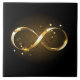 Gold, jewellery infinity symbol with gold stars on a black background. Design with gold star.