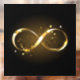Gold, jewellery infinity symbol with gold stars on a black background. Design with gold star.