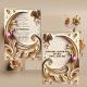 This exuberant, opulent Baroque Invitation card embraces grandeur and luxury. Perfect for couples who love art, intricateness and fineness in details. The design features soft gold adornment of tulip, leaf swirls and crescent moon. The pattern reminds of the Baroque architecture during 17th century and speaks of confidence, dynamism and energy. Timeless pieces of the art have inspired artists and the audience alike. To put the art in subtle colours of ivory, soft gold and mulberry creates magic. A romantic piece of this beautiful art is just perfect for modern weddings. One can admire the patterns and wholesomeness with the embossed highlights. The text used is a modern script to enhance the clarity of perception. You can easily customize the template, put your own words and watch it transform to your liking.