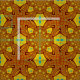 Stylized Shapes: The repeating elements appear to be stylized shapes, reminiscent of flowers, eyes, or abstract geometric forms, interwoven with the golden yellow and cyan.
