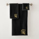 "Customize" to change your own background colour to decorate this personalized design. On black towels.