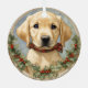 A cute Golden Lab puppy poses for his first Christmas. Name, year, and photos are easily personalized. Don't have a photo of your loved one's new Golden Lab? It's cool. Both sides of this ornament are already prepared with pictures for gifting.