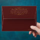 This cordovan coloured envelope with the golden lace filigree on front and customizable return address on back, is large enough to hold your wedding & reception invitations, RSVP card & return envelope.