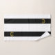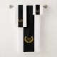 Elégant or comme le laurier et le monogramme d'or sur le kit de serviettes de bain rayé noir et blanc.