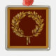 Square premium ornament with an image of a golden laurel leaf on burgundy with a gold border. See the entire Toga Ornament collection in the PARTY FAVORS section.