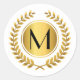 Golden Laurel Wreath Monogrammed Classic Round Sticker