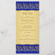 Golden leafy swirls and joined hearts on a royal blue background Wedding Menu Card.