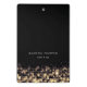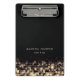 Chic black clipboard features two lines of custom text in modern white lettering, accented by crisscrossing strands of gold string lights with a blurred bokeh effect. Design repeats on reverse side. Please note that this clipboard is a mini size; full size version also available in our Golden Lights collection.