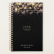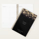 Chic planner in rich black with a gold spine features crisscrossing strands of gold string lights with a blurred bokeh effect. Personalize with four lines of custom text, making this planner a perfect choice for businesses, appointments or daily tasks.