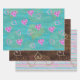 Golden love is elegant and fresh with hearts and pink flowers. Three different prints to suit your necessities in gift wrapping. For female or male with this sheets set in vibrant colours of green aqua, pinks and brown for the guys. This colours are attractive and will make any gift to be remember. Use them for valentines, weddings, anniversaries, birthdays, mothers day, fathers day, teachers day, for any day or celebration.