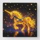 Golden lovely unicorn glow cute magic neon square wall clock