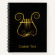 Golden lyre with four strings. Custom text. Seamless repeating background at back side.