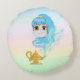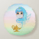Golden magic lamp and genie on pastel colours Round Pillow.