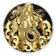 Ceramic doorknob/pull with image of a golden mermaid against a black background.