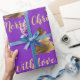 Golden Merry Christmas Tree with Candles Elegant Ultra Violet Pantone Colour of 2018 and Gold Christmas Tree Pattern with custom text Merry Christmas With Love, Santa, you can change or delete the text