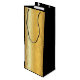 Personalized gift bag with name in gold metallic effect geometric background. Faux gold on black wine bag.