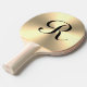 Golden monogram table tennis ping pong paddle. Personalized sports game gift idea for tabletennis. Shiny metallic gold print personalized with elegant name initials on front and back. Luxury game and sports accessories. Great for Birthday, wedding, party, event, business and more. Reversible design on two sides. Luxurious monogrammed design for men, women and kids.