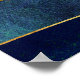 An abstract landscape with unique colours and textures showing a nigh time mountain scene with the glowing lights of climbers and a moon in shades of blue, gold, cyan, and yellow.